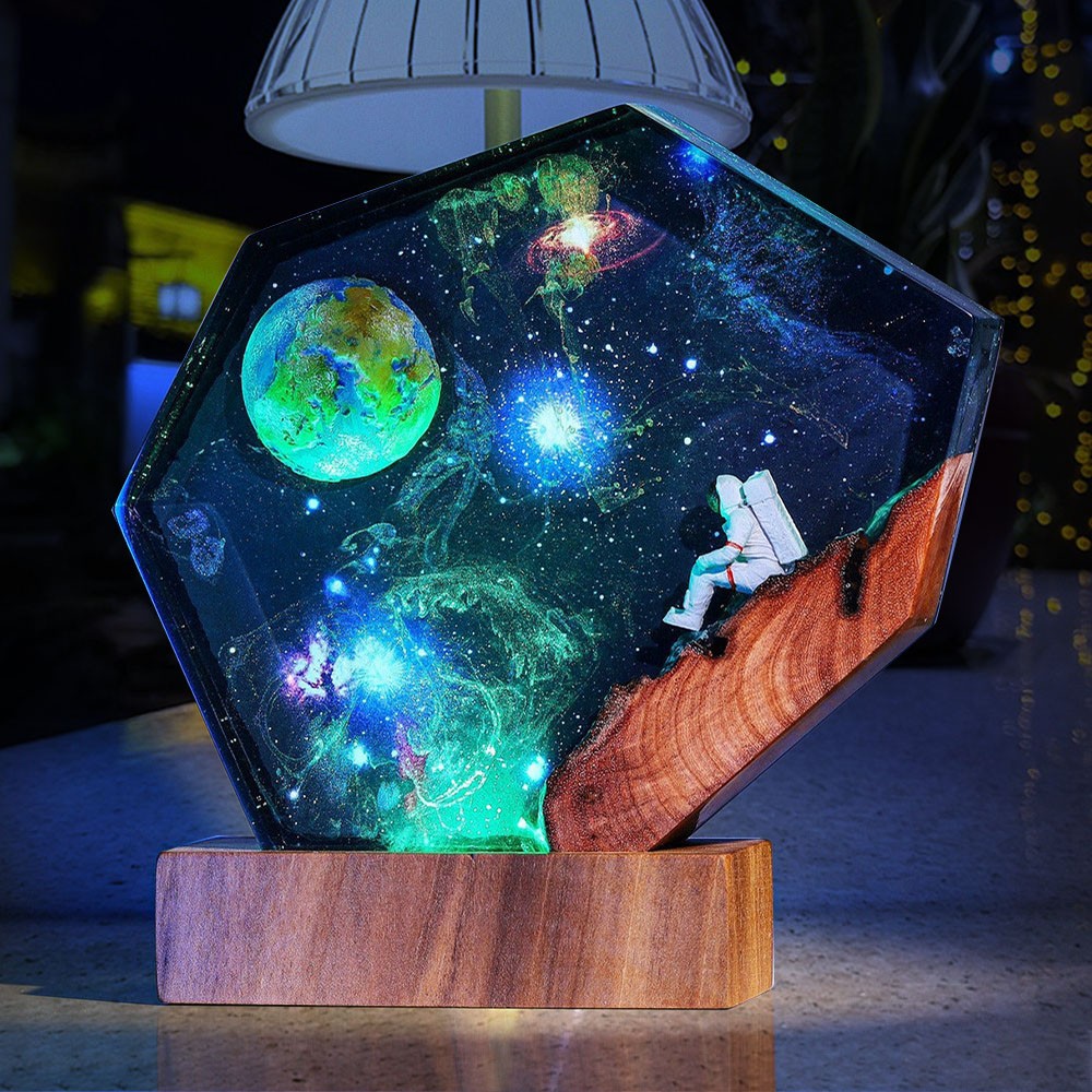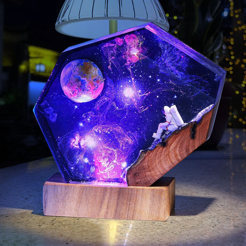Ruimte Astronaut Epoxy Lamp Galaxy Houthars Nachtlampje Uniek Slaapkamer Cadeau voor Geliefde Verjaardagscadeau voor Beste Vriend Valentijnsdag Cadeau Idee