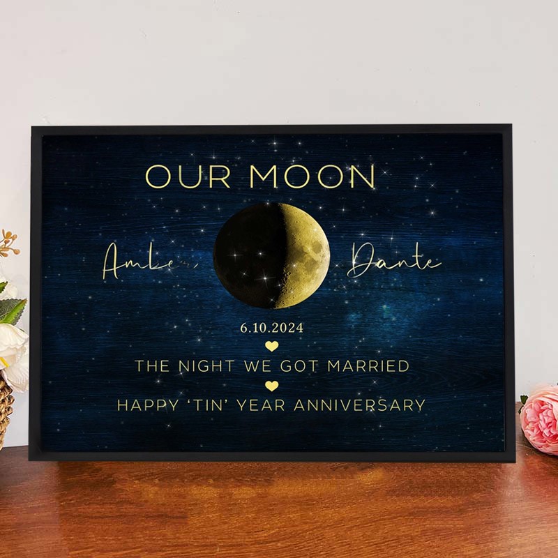 De nacht dat we getrouwd zijn, maak een aangepaste lijst met onze maanfaseprint, ideeën voor kerstcadeaus, ideeën voor jubileumcadeaus