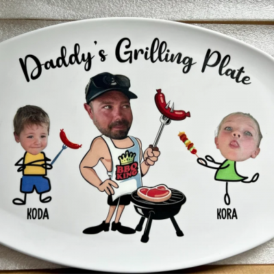 Gepersonaliseerde BBQ-plaat voor papa, grote portretfoto met foto en naam van het kind, leuk keukencadeau voor papa, uniek cadeau voor Vaderdag