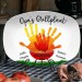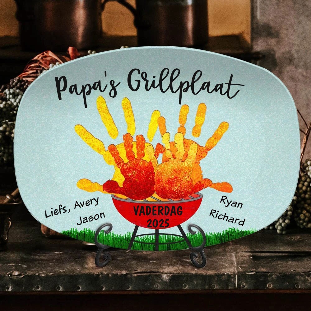 Gepersonaliseerde opa-handafdruk BBQ-schaal met naam van het kind, uniek Vaderdagcadeau voor vader of opa als familiedinercadeau