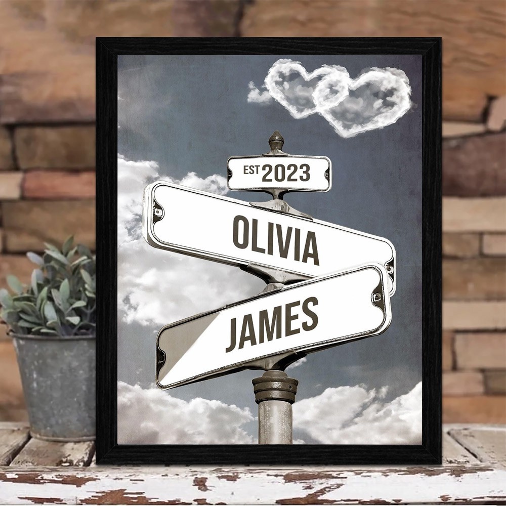 Gepersonaliseerd geboortedatum vintage straatnaambord met namen cadeau voor koppels jubileum cadeau-ideeën
