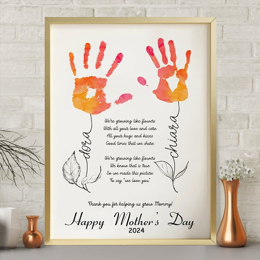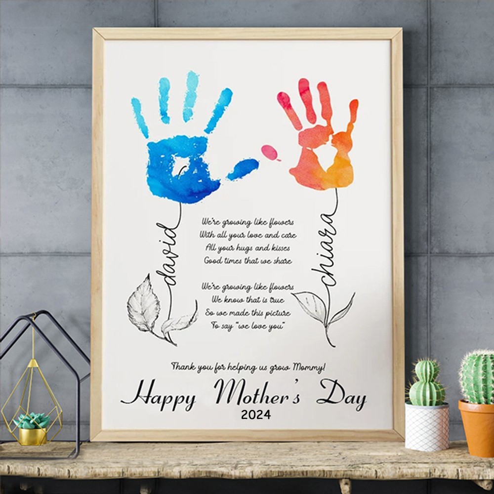 Gepersonaliseerd handafdruk bloemenframe met kindernamen