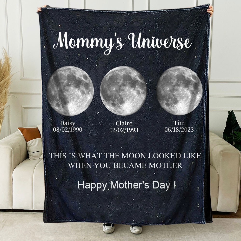 Gepersonaliseerde Mommy's Universe Moon Phase Blanket Moederdagcadeaus Uniek familiecadeau voor mama