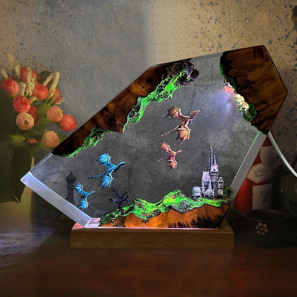 Vliegende Draak Nachtlampje Hars Houten Lamp Uniek Cadeau Voor Vriendin Verjaardagscadeau Ideeën Valentijnsdag Cadeau Ideeën