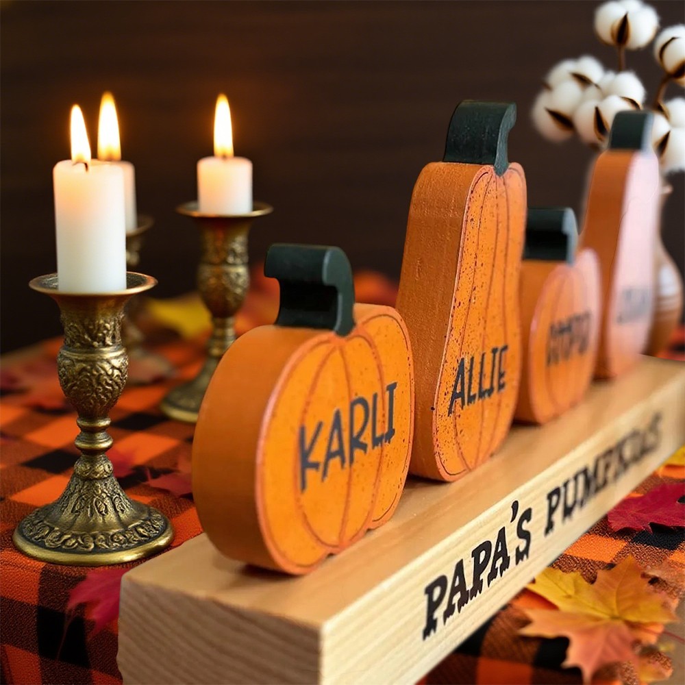 Papa's Pumpkins Block with Kids Names Personalized Family Halloween Home Decor Halloween Gift Ideas