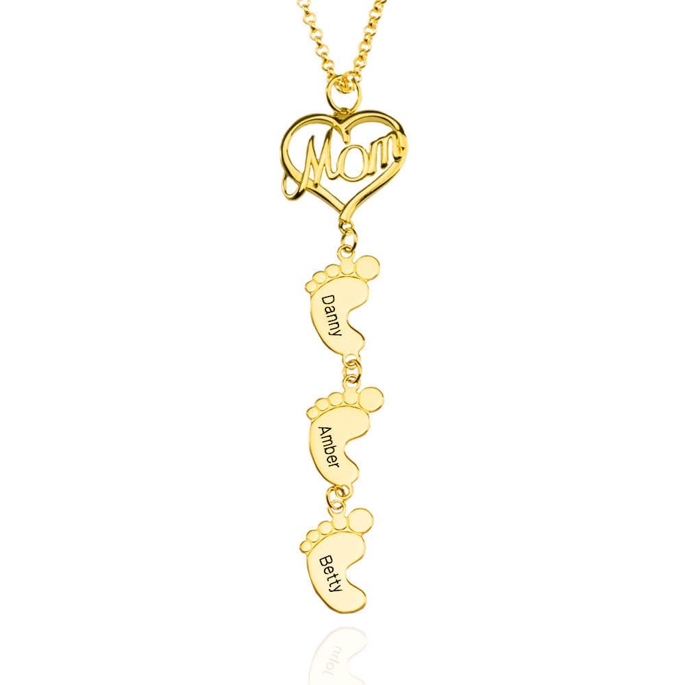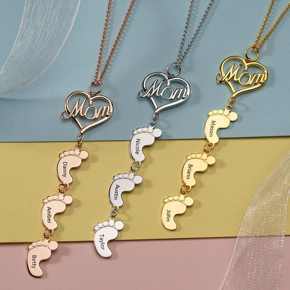 Personalized 1-10 Baby Feet Mom Necklace With Kids Names Unique Gift For Mom Grandma Mother's Day Gift