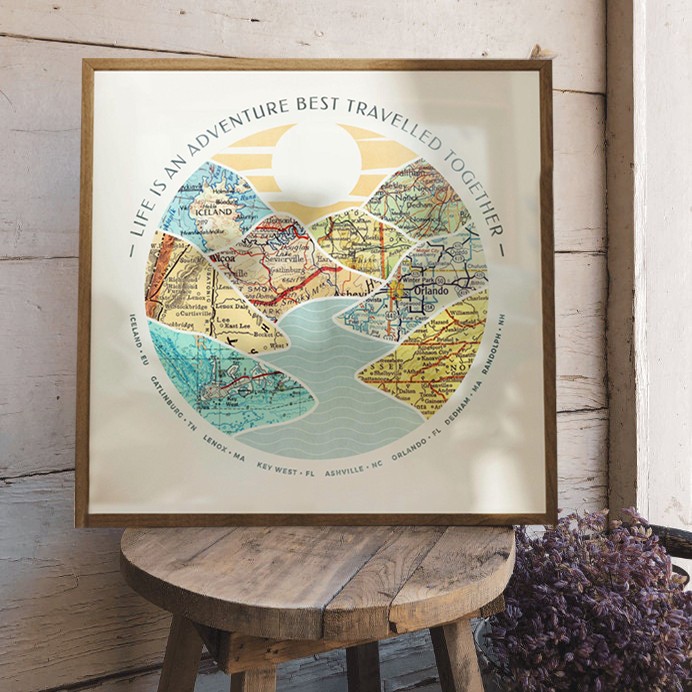 Personalized Adventure Mountain Map Print Wood Frame Unique Gifts for Couple Anniversary Gift for Her Him