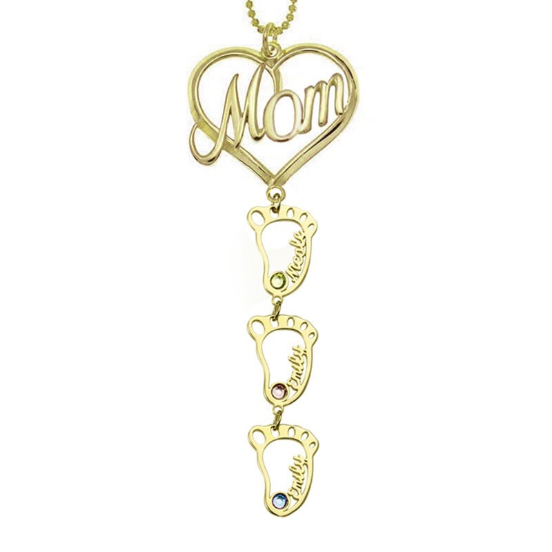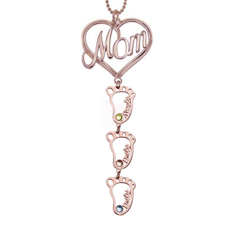 Personalized Baby Feet Pendants Mom Birthstone Necklace With Engraved Name Mother's Day Gift Ideas
