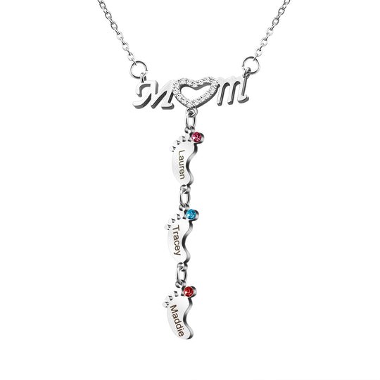 Personalized Baby Feet Pendants Name Birthstone Necklace Family Gift For Mom Grandma