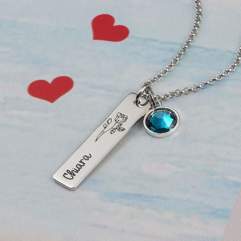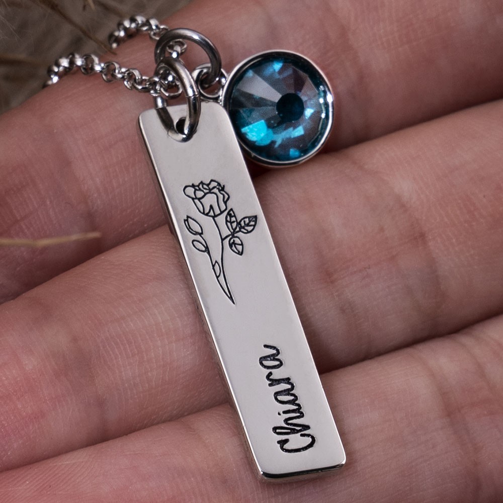 Personalized Bar Necklace with Birthstone Birth Flower Jewelry