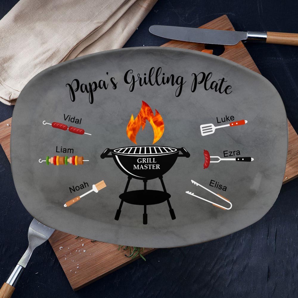 Personalized BBQ Daddy's Grilling Plate with Kids Names Father's Day Gift