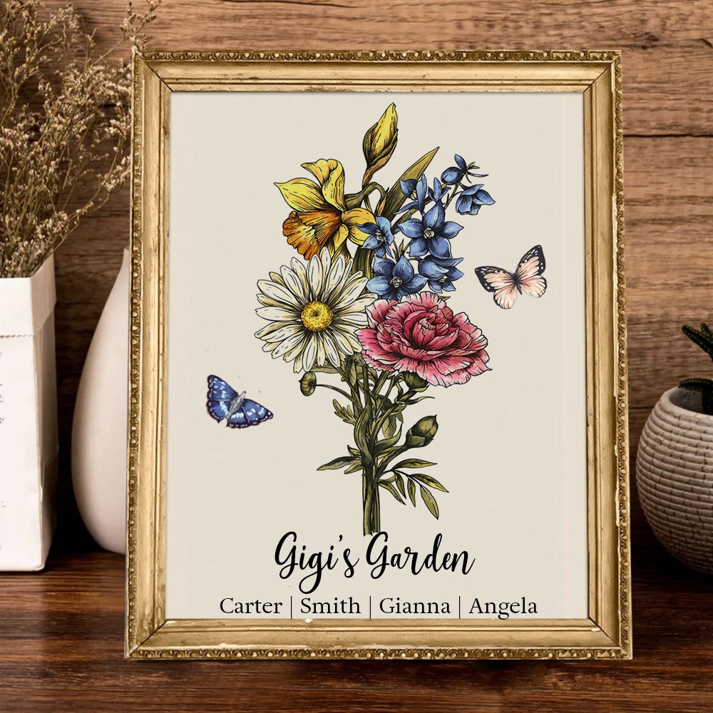 Personalized Birth Flower Family Bouquet Frame Sign with Kids Names for Mom Grandma Christmas Gift Ideas