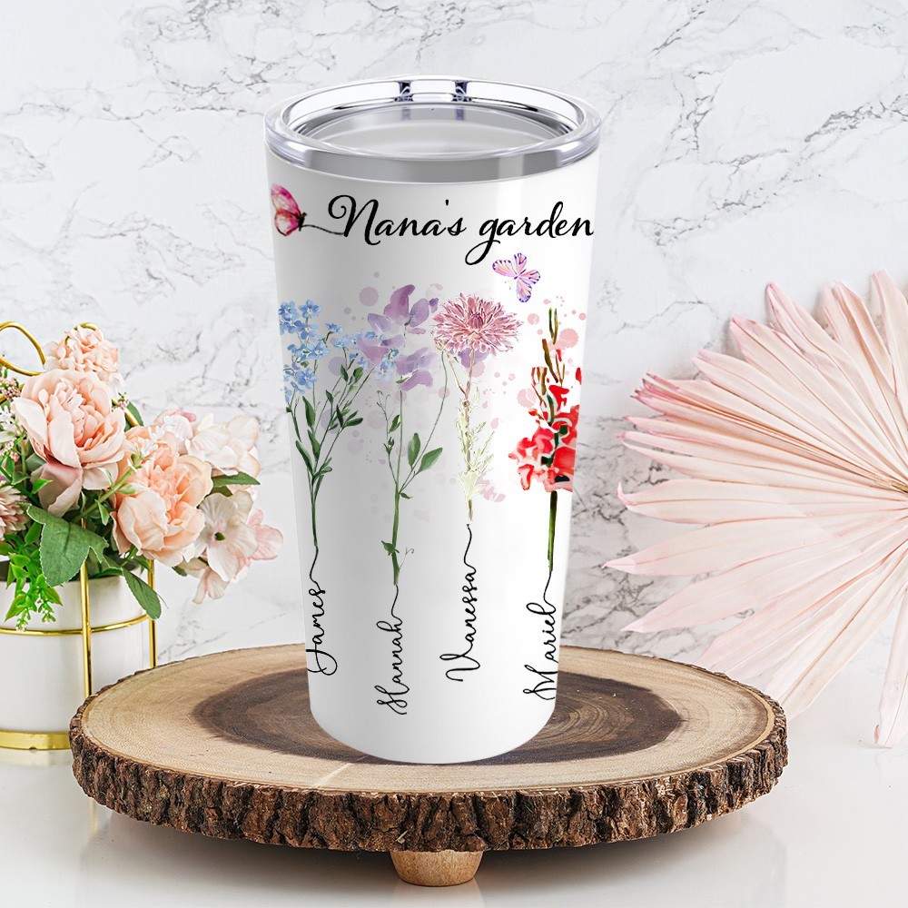 Personalized Birth Flower Print Art Tumbler For Mom Grandma