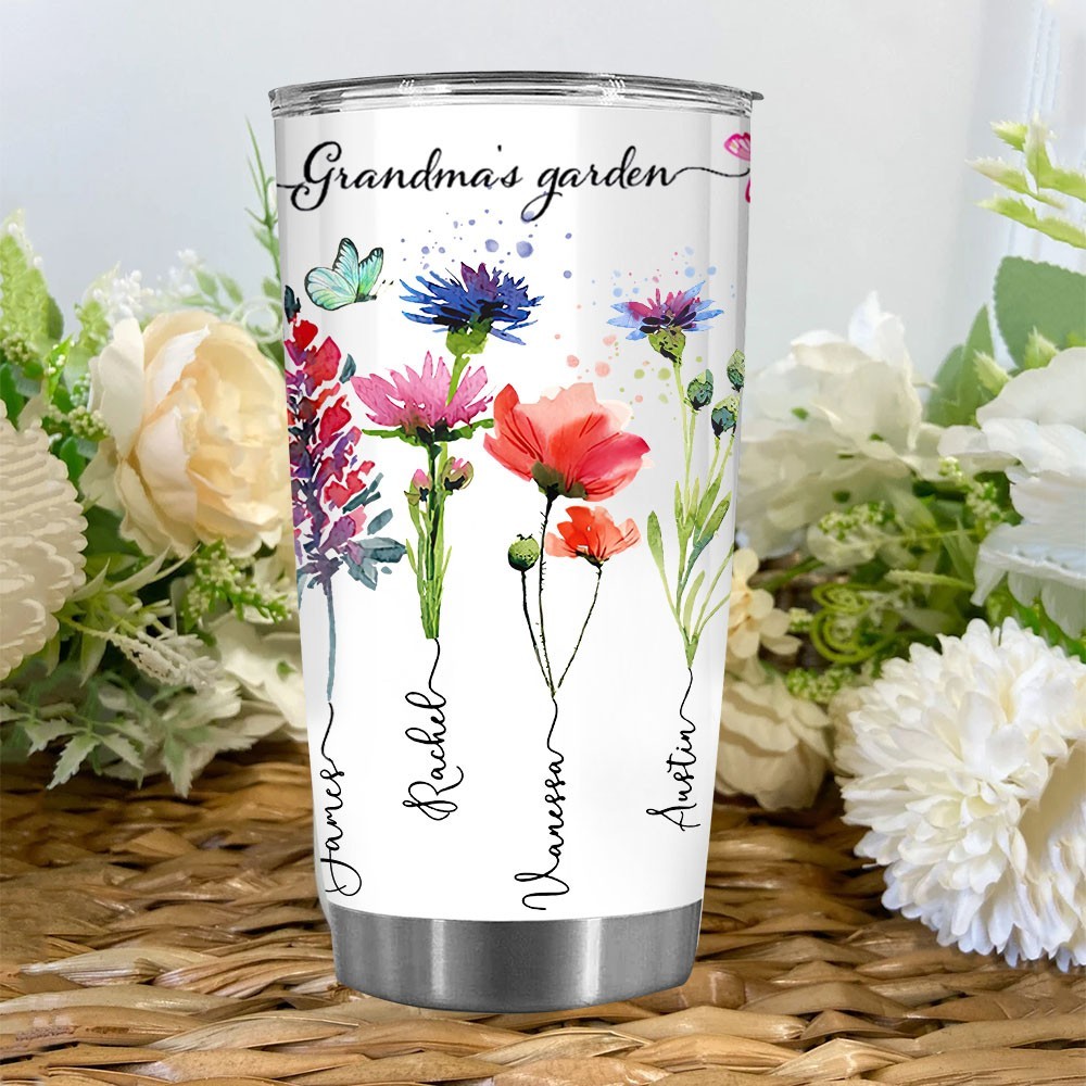Personalized Birth Flower Tumbler with Kids Names For Mom Grandma