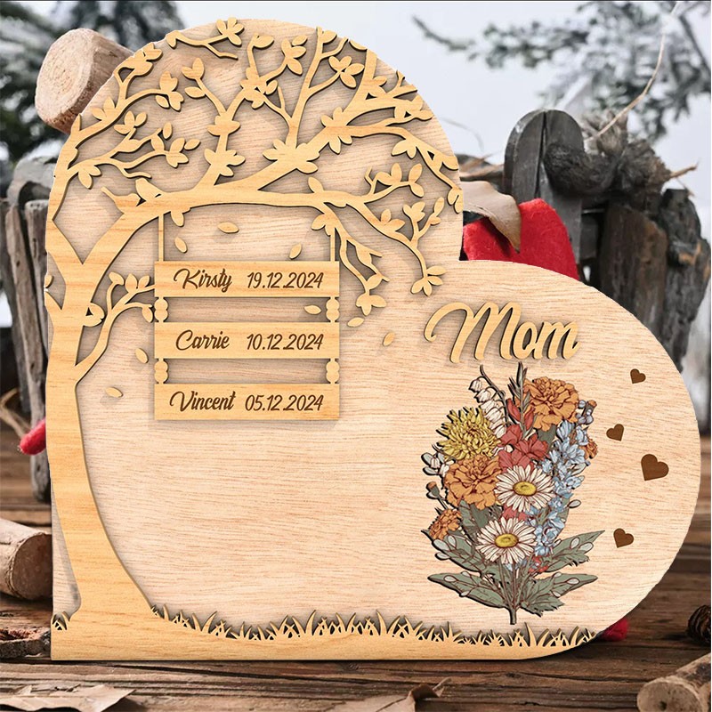 Personalized Birth Month Flower Family Bouquet Wood Plaque Sign with Kids Names for Mom Family Keepsake Gift Mother's Day Gift
