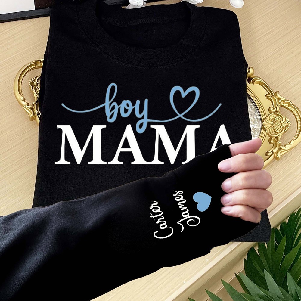 Personalized Boy Mama Sweatshirt with Kids Names on Sleeve for Mom New Mom Gift Momma Birthday Gifts Mother's Day Gift