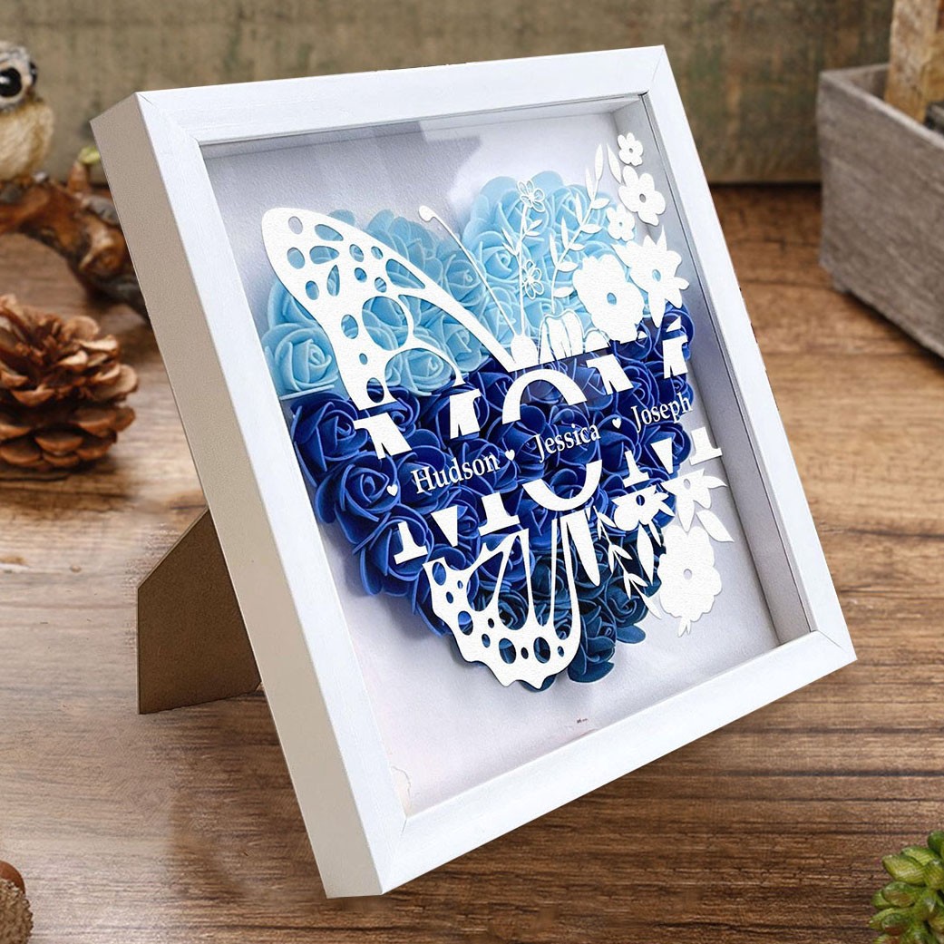 Personalized Butterfly Mom Flower Shadow Box with Kids Names Gift for Mom Grandma Mother's Day Gift Ideas