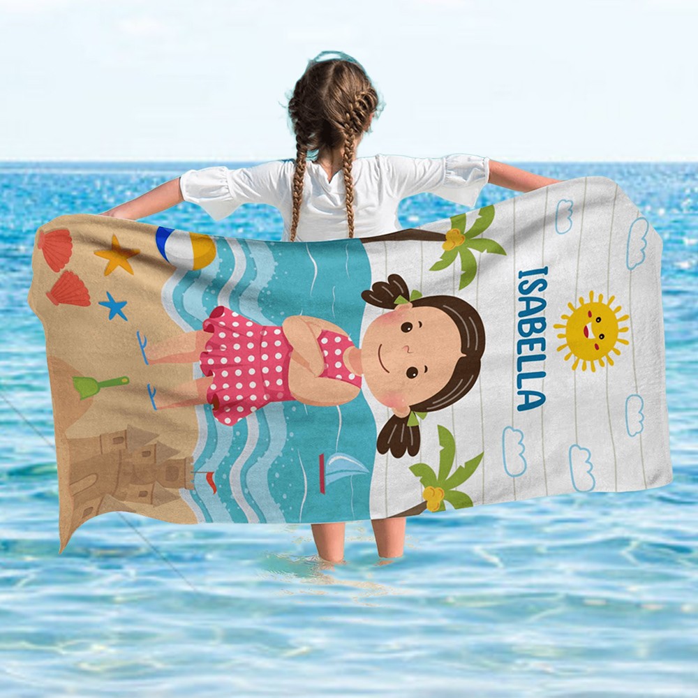 Personalized Cartoon Character Beach Towel with Name for Kids Summer Vacation Gift for Boys Girls