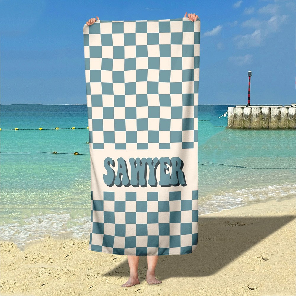 Personalized Checkered Retro Beach Towel with Name Summer Gift for Kids