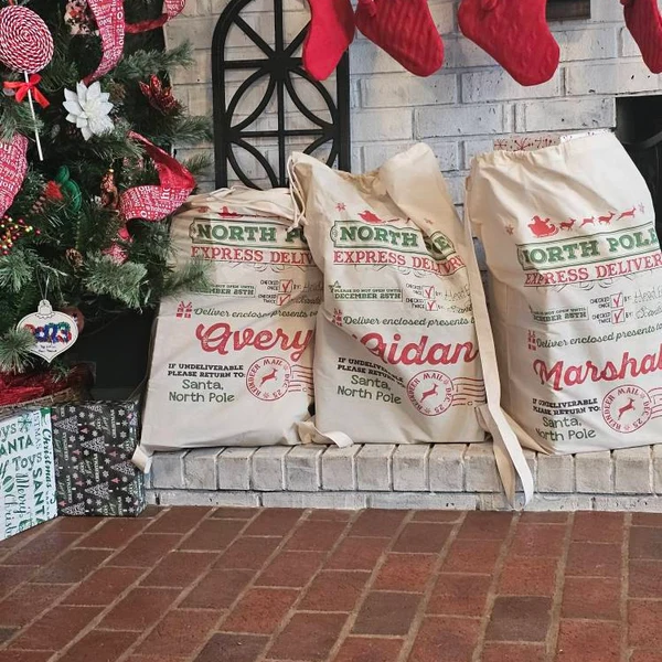 Personalized Christmas Santa Sack Bags with Name Holiday Gift Bag for Kids Unique Christmas Gift Bag