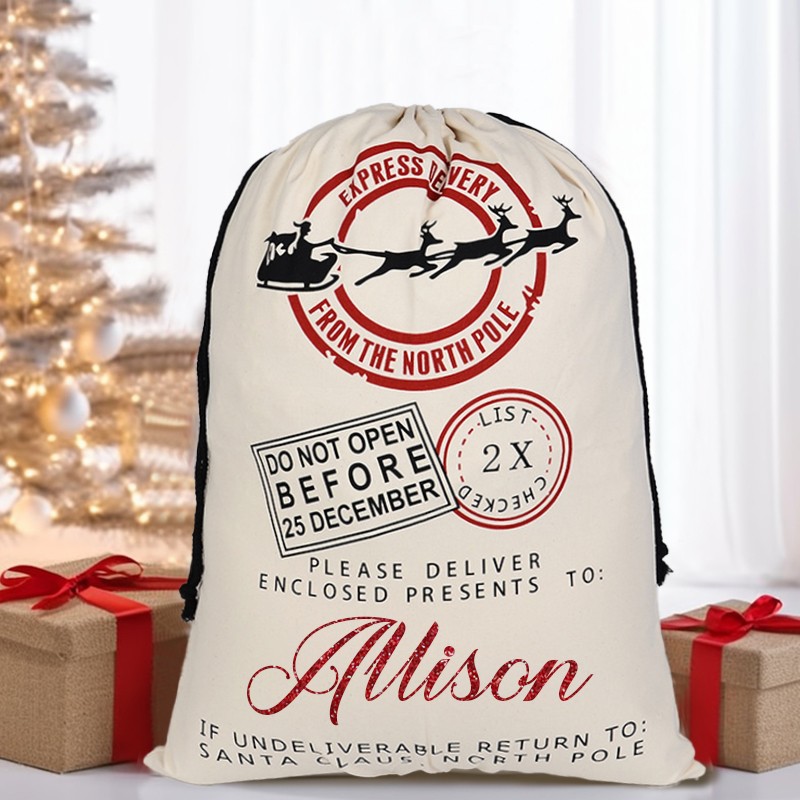 Personalized Christmas Santa Sack Bags with Name Holiday Gift Bag for Kids Unique Christmas Gift Bag