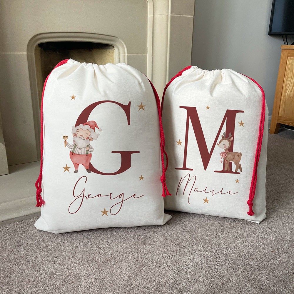 Personalized Christmas Santa Sack Bags with Name Holiday Gift Bag for Kids Unique Christmas Gift Bag