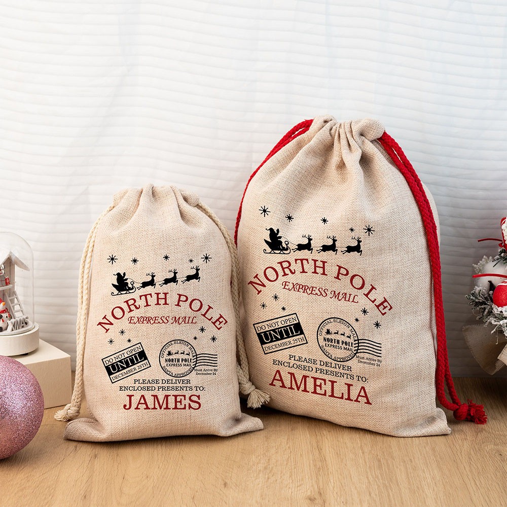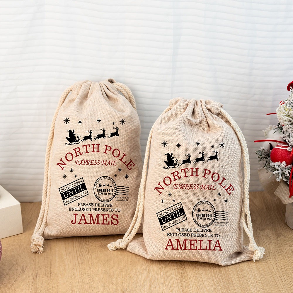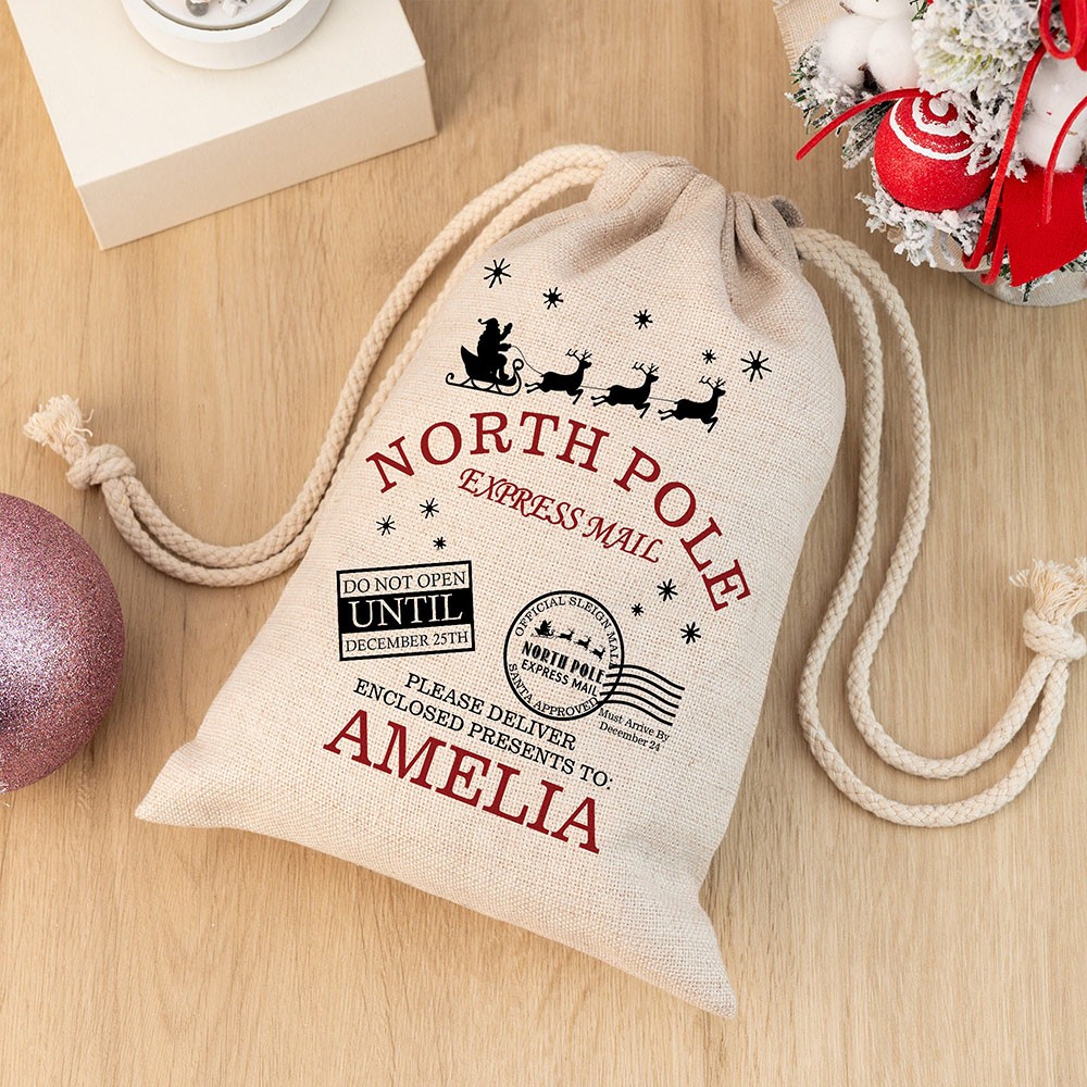 Personalized Christmas Santa Sack Bags with Name Holiday Gift Bag for Kids Unique Christmas Gift Bag