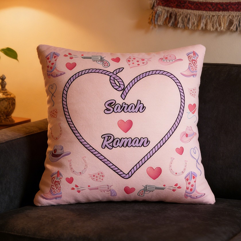 Personalized Couple Names Heart Rope Pink Throw Pillow Unique Gift for Anniversary Valentine's Day