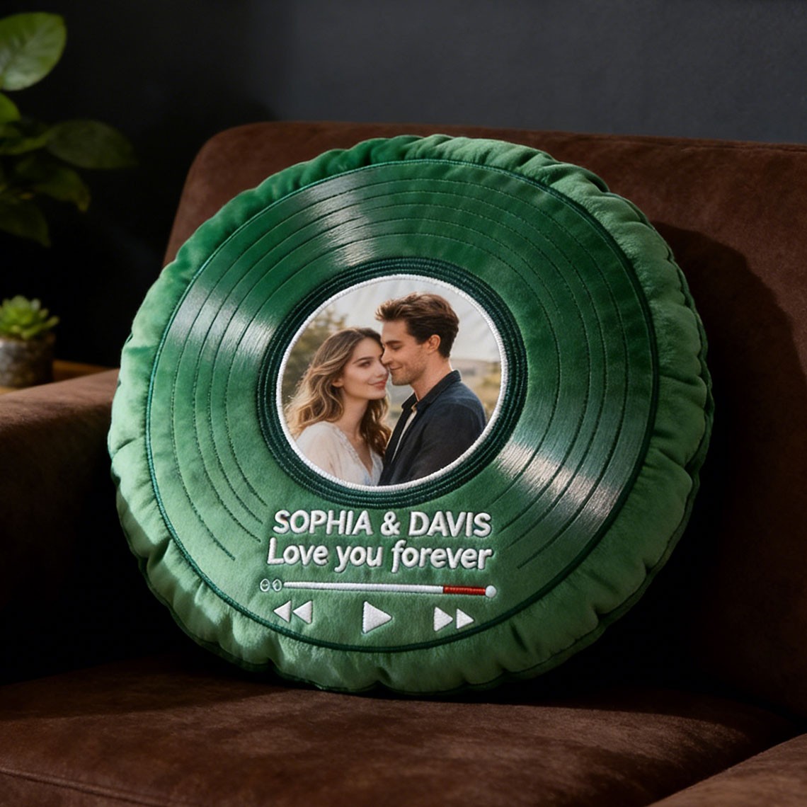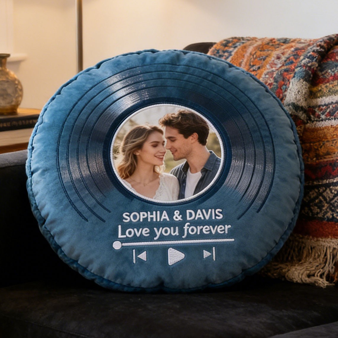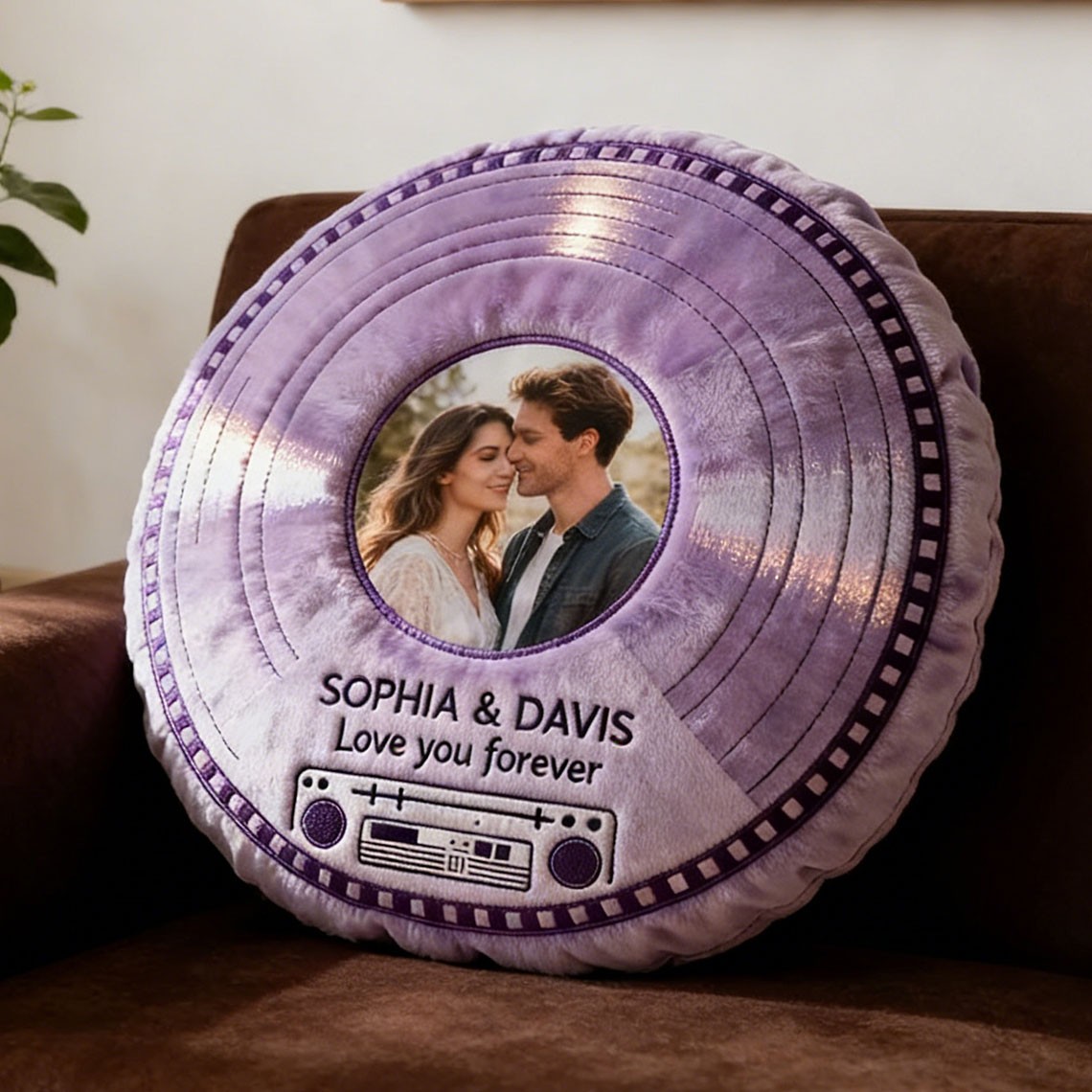 Personalized Couple Photo Music Record Shaped Pillow with Name Gifts for Anniversary Valentine's Day Keepsake Gift for Couples