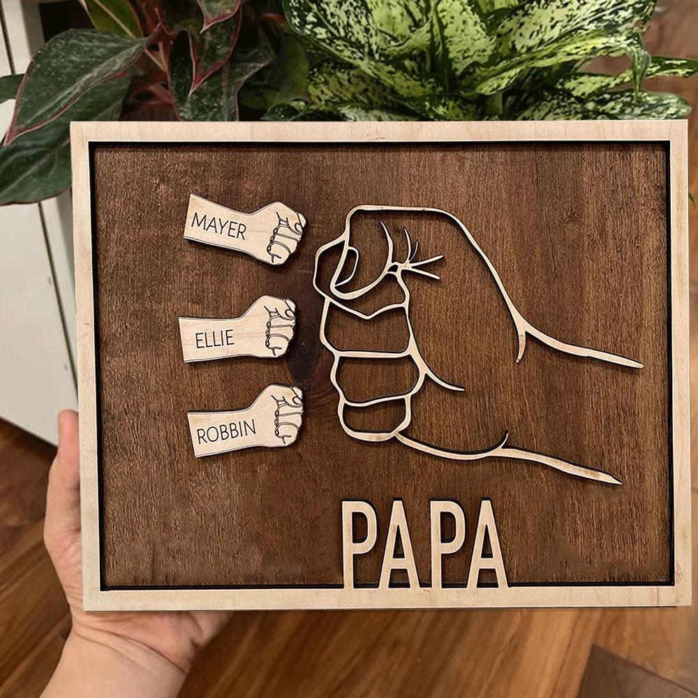 Personalized Dad Fist Bump Wooden Frame Sign Family Gift Father's Day Gift Ideas