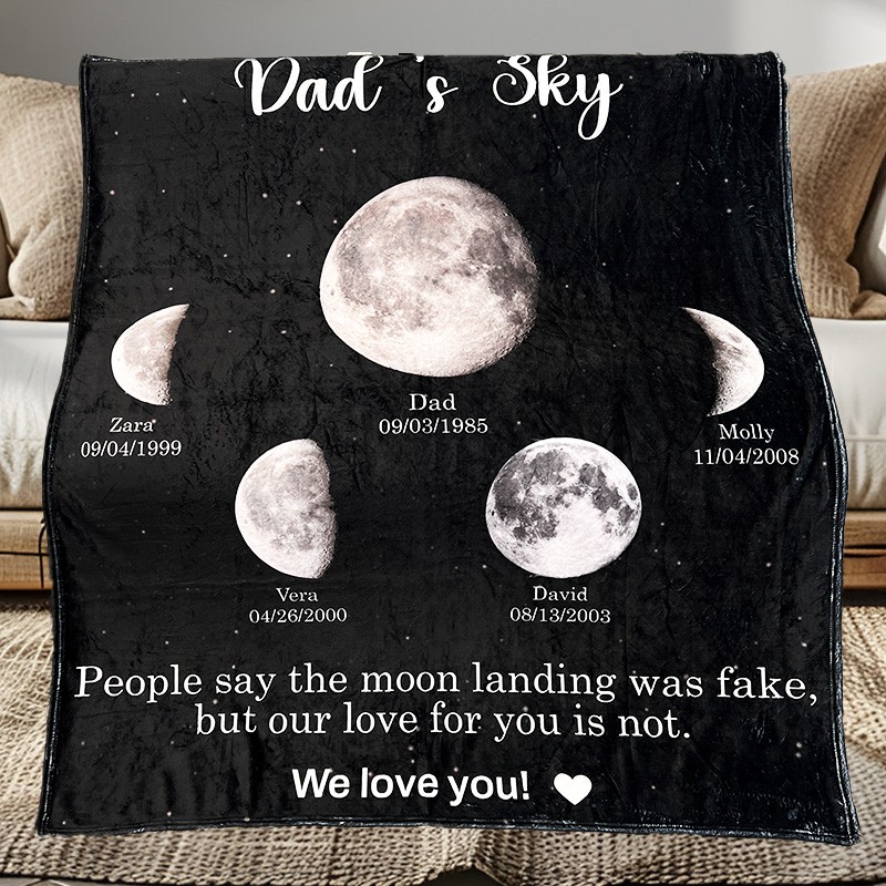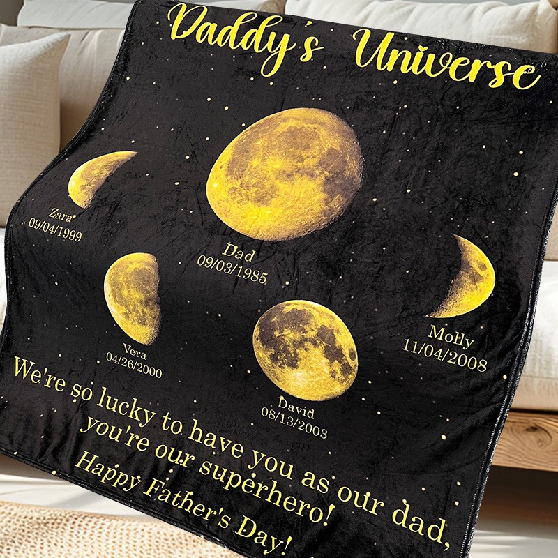 Personalized Daddy's Universe Moon Phase Blanket With Kids Names Family Gift Birthday Gift Unique Gift For Dad