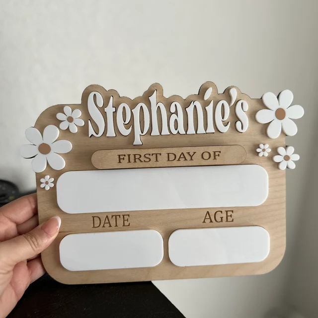 Personalized Daisy Toddler First & Last Day of School Interchangeable Sign Custom Back To School Sign Photo Props Gift