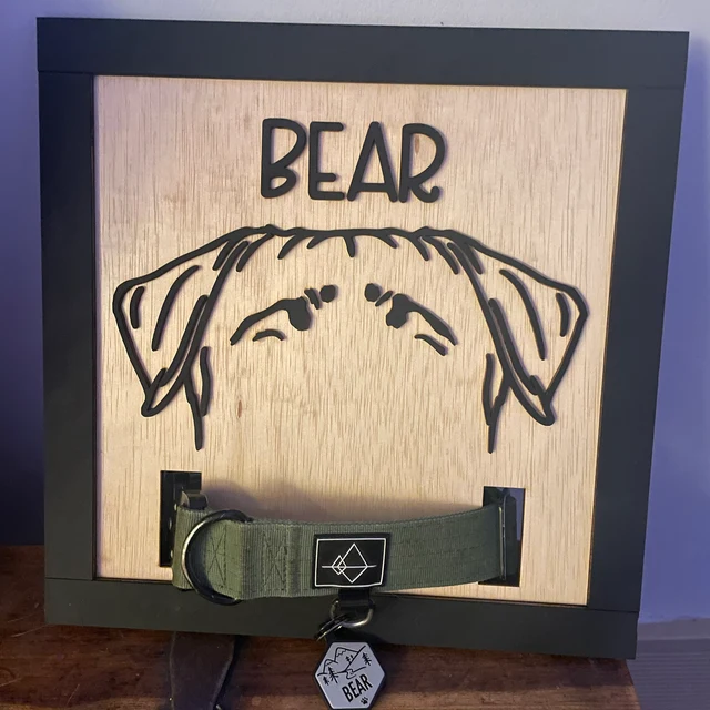 Personalized Dog Ear Outline Wood Frame with Collar Holder Memorial Gift for Pet Lovers