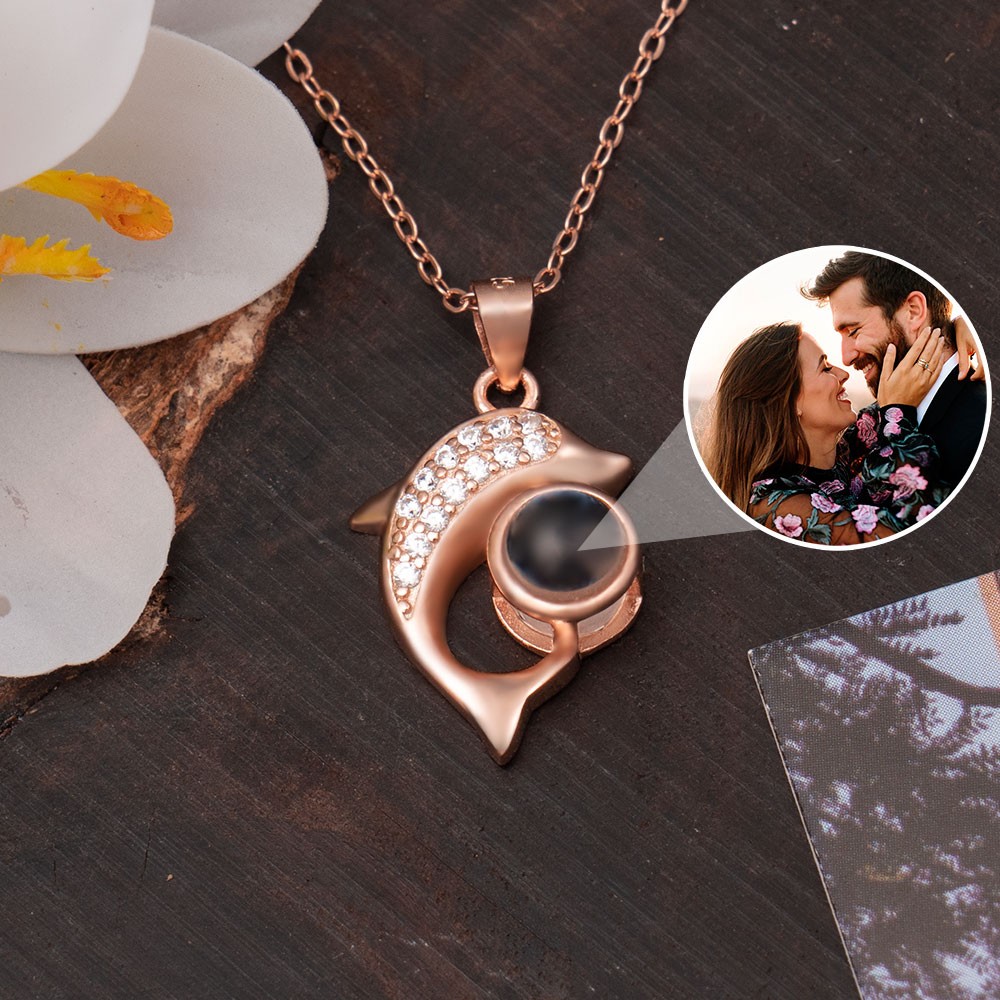 Personalized Dorphin Shaped Photo Projection Necklace With Picture Inside Unique Keepsake Gift For Couple