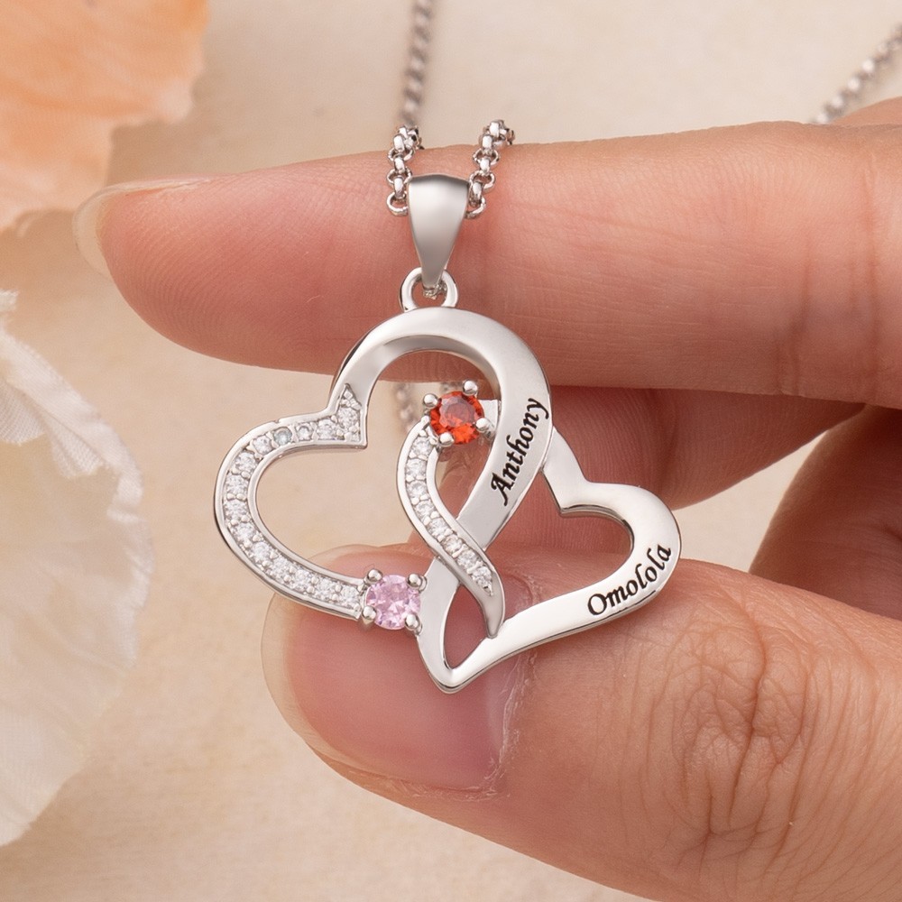 Personalized Double Heart Necklace With 2 Names Birthstones Gifts Anniversary Gift Ideas