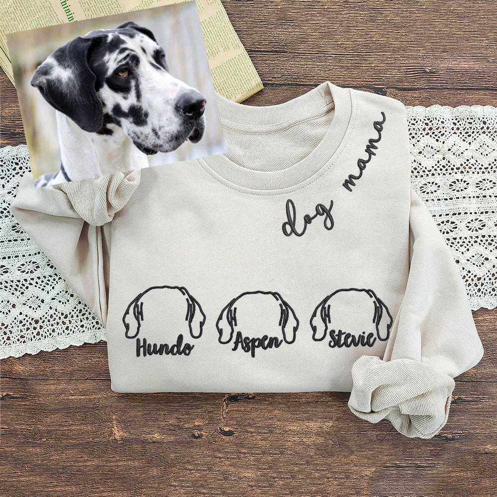 Personalized Embroidered Dog Ears On Chest Sweatshirt Hoodie Gifts for Pet Lover