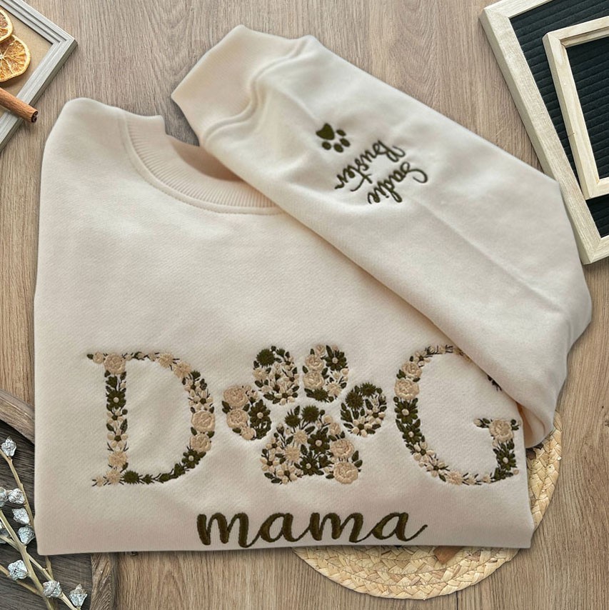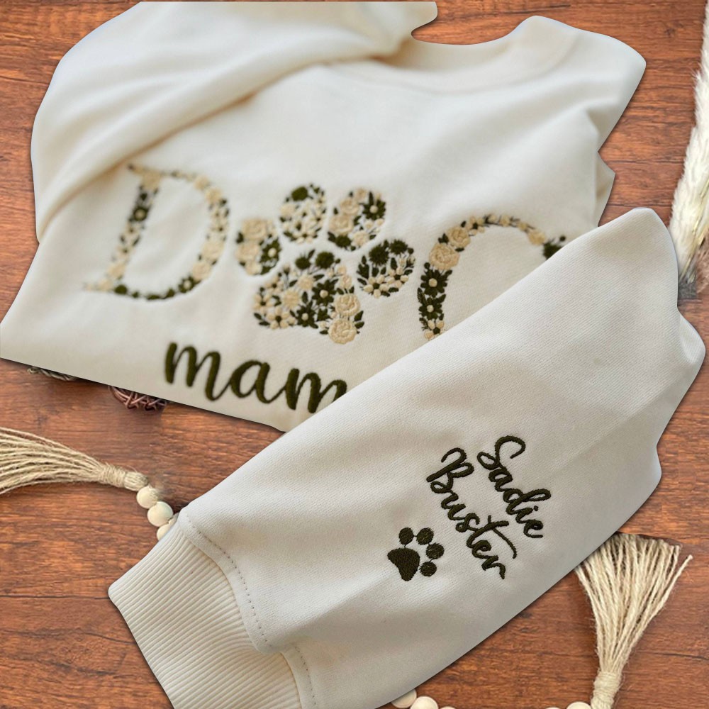 Personalized Embroidered Dog Mama Sweatshirt Hoodie With Pet Paw Unique Gift For Pet Lover Christmas Gifts