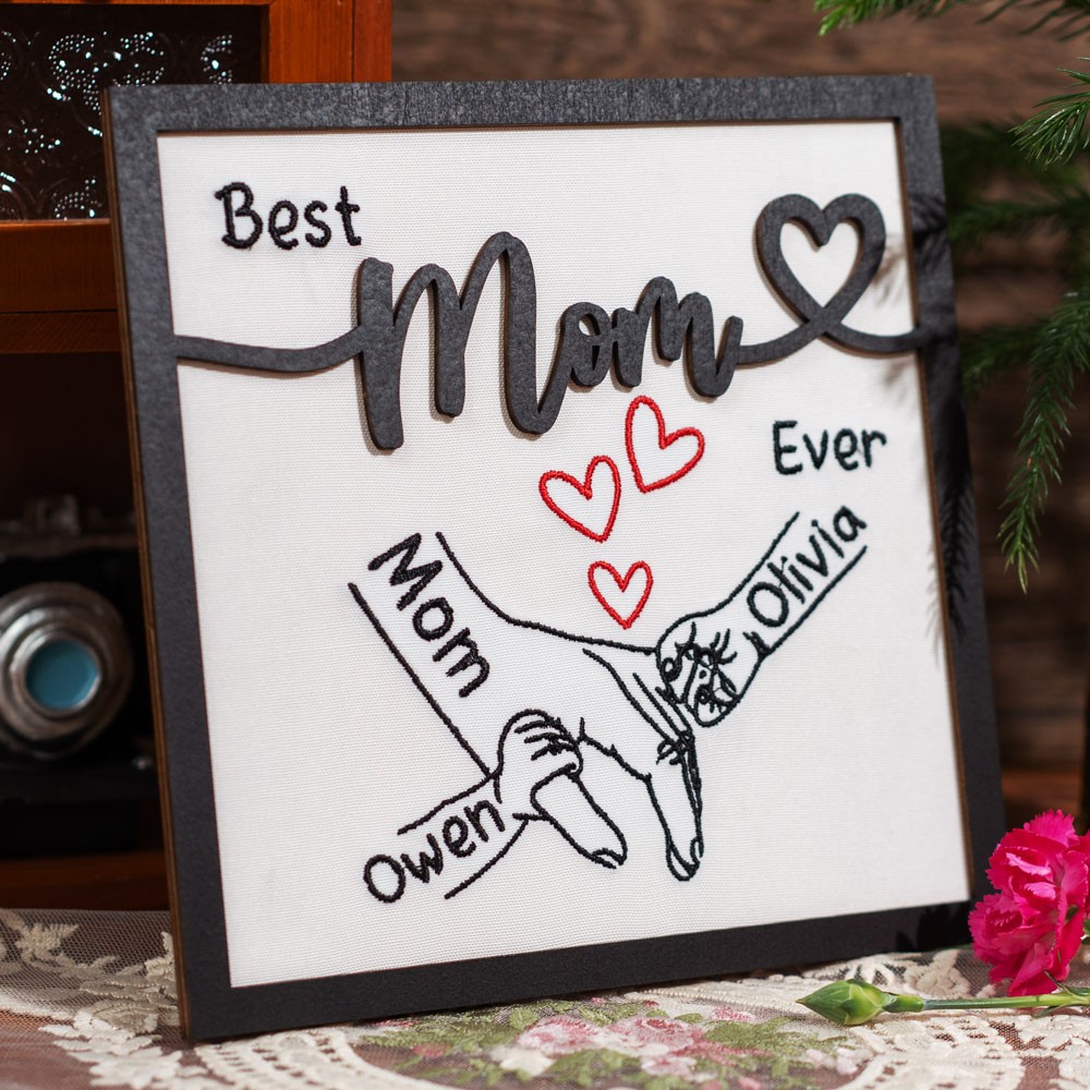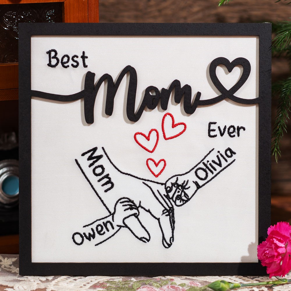 Personalized Embroidered Mommy And Kids Holding Hands Sign Gifts for Mom Grandma Mother's Day Gift