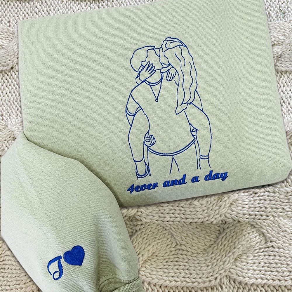 Personalized Embroidered Photo Portrait Outline Sweatshirt Anniversary Gifts for Her Valentine's Day Gifts for Couples