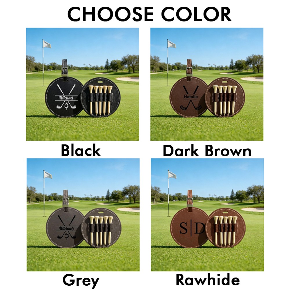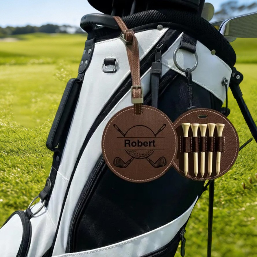 Personalized Engraved Leather Golf Bag Tag for Men Golf Tee Holder Gift for Golf Lovers Anniversary Gift Valentine's Day Gifts