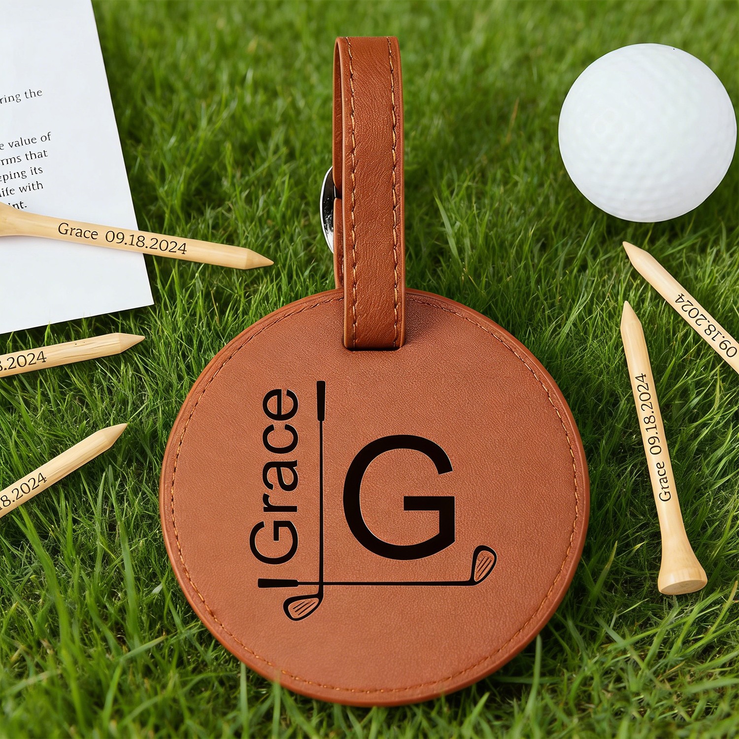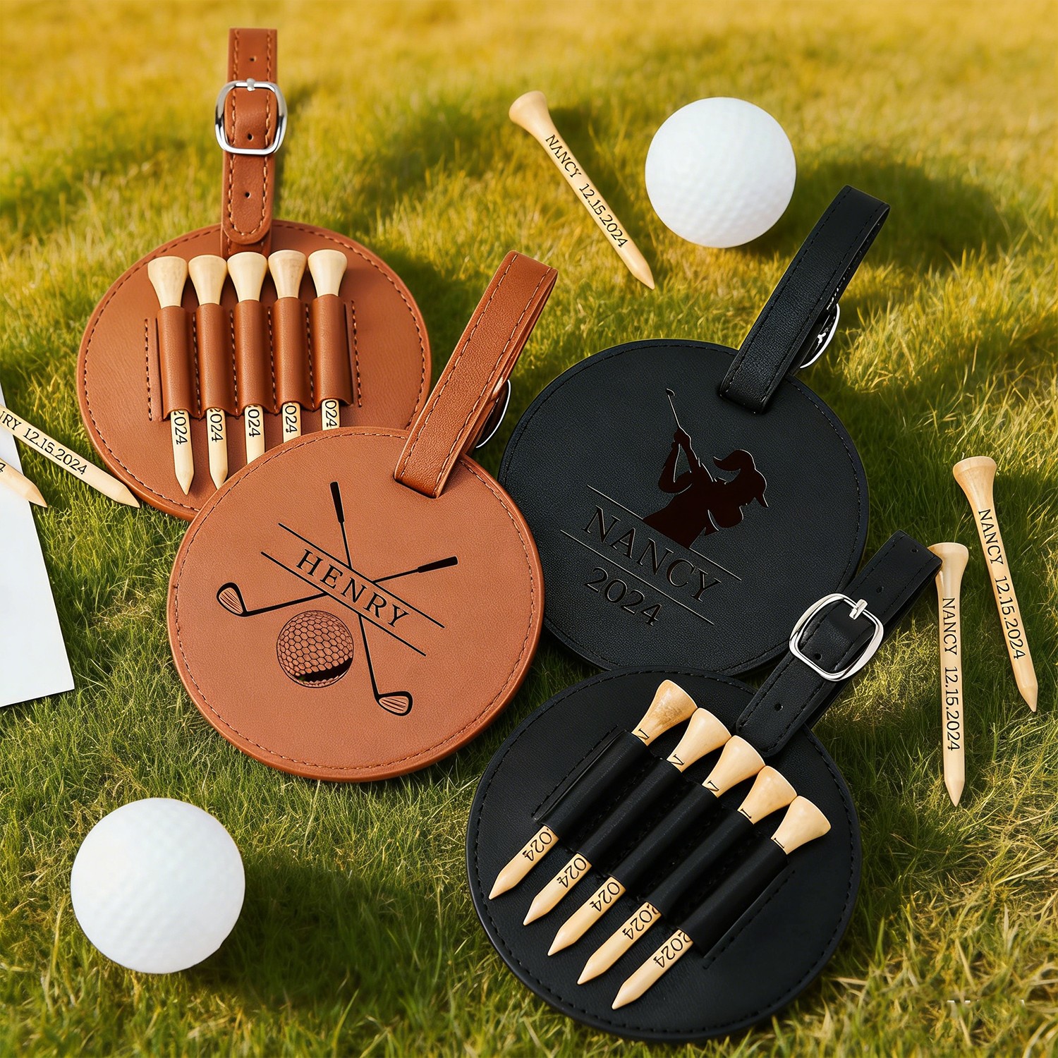 Personalized Engraved Leather Golf Bag Tag for Men Golf Tee Holder Gift for Golf Lovers Anniversary Gift Valentine's Day Gifts