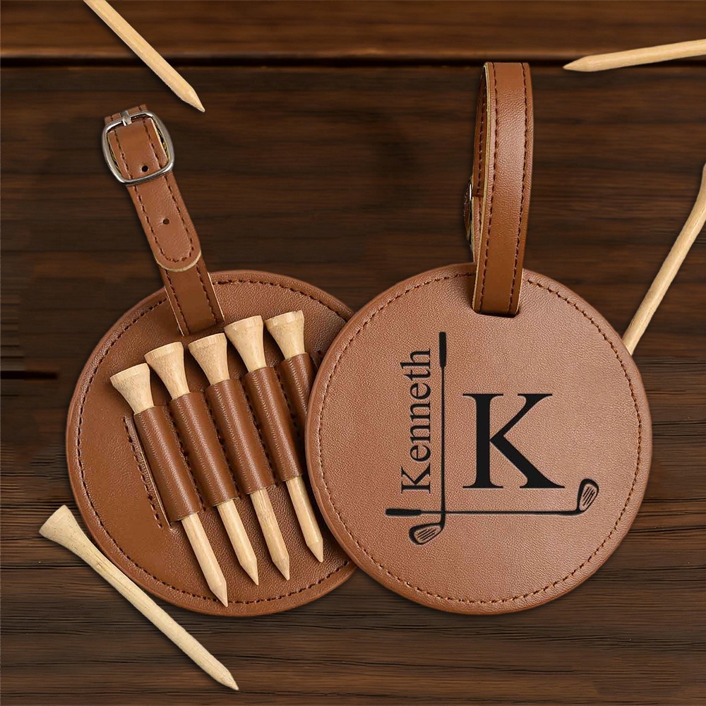 Personalized Engraved Leather Golf Bag Tag for Men Golf Tee Holder Gift for Golf Lovers Anniversary Gift Valentine's Day Gifts