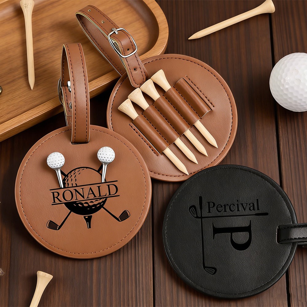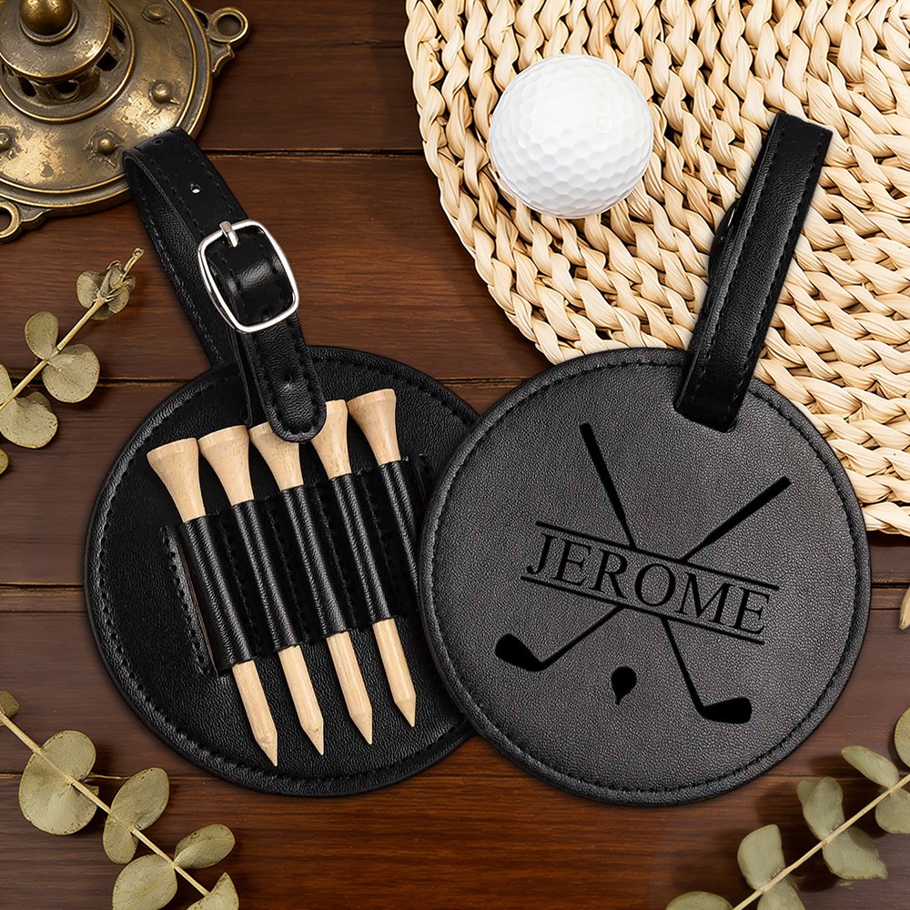 Personalized Engraved Leather Golf Bag Tag for Men Golf Tee Holder Gift for Golf Lovers Anniversary Gift Valentine's Day Gifts