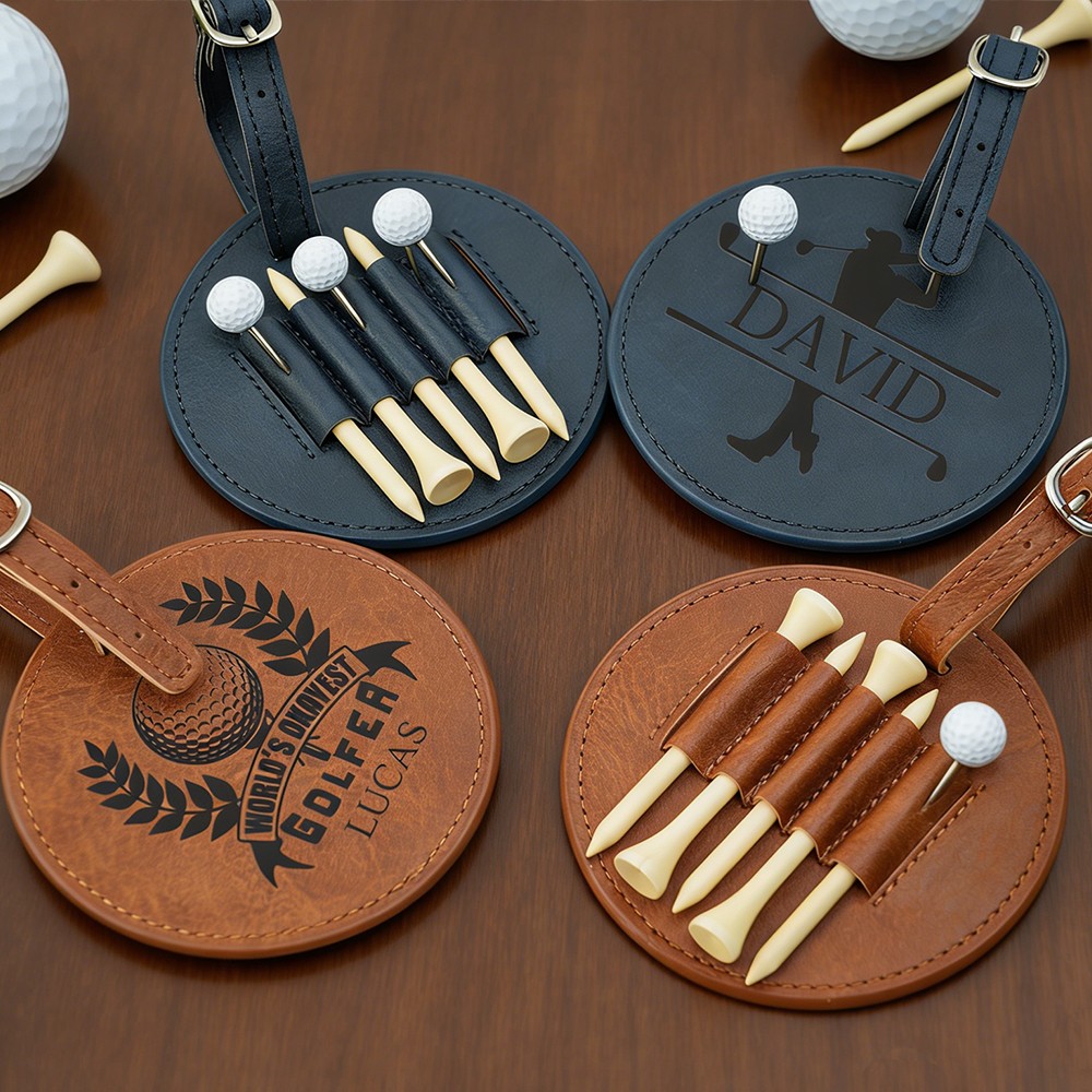 Personalized Engraved Leather Golf Bag Tag for Men Golf Tee Holder Gift for Golf Lovers Anniversary Gift Valentine's Day Gifts