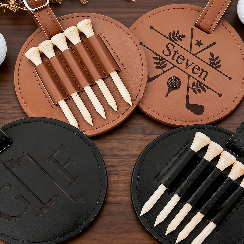 Personalized Engraved Leather Golf Bag Tag for Men Golf Tee Holder Gift for Golf Lovers Anniversary Gift Valentine's Day Gifts
