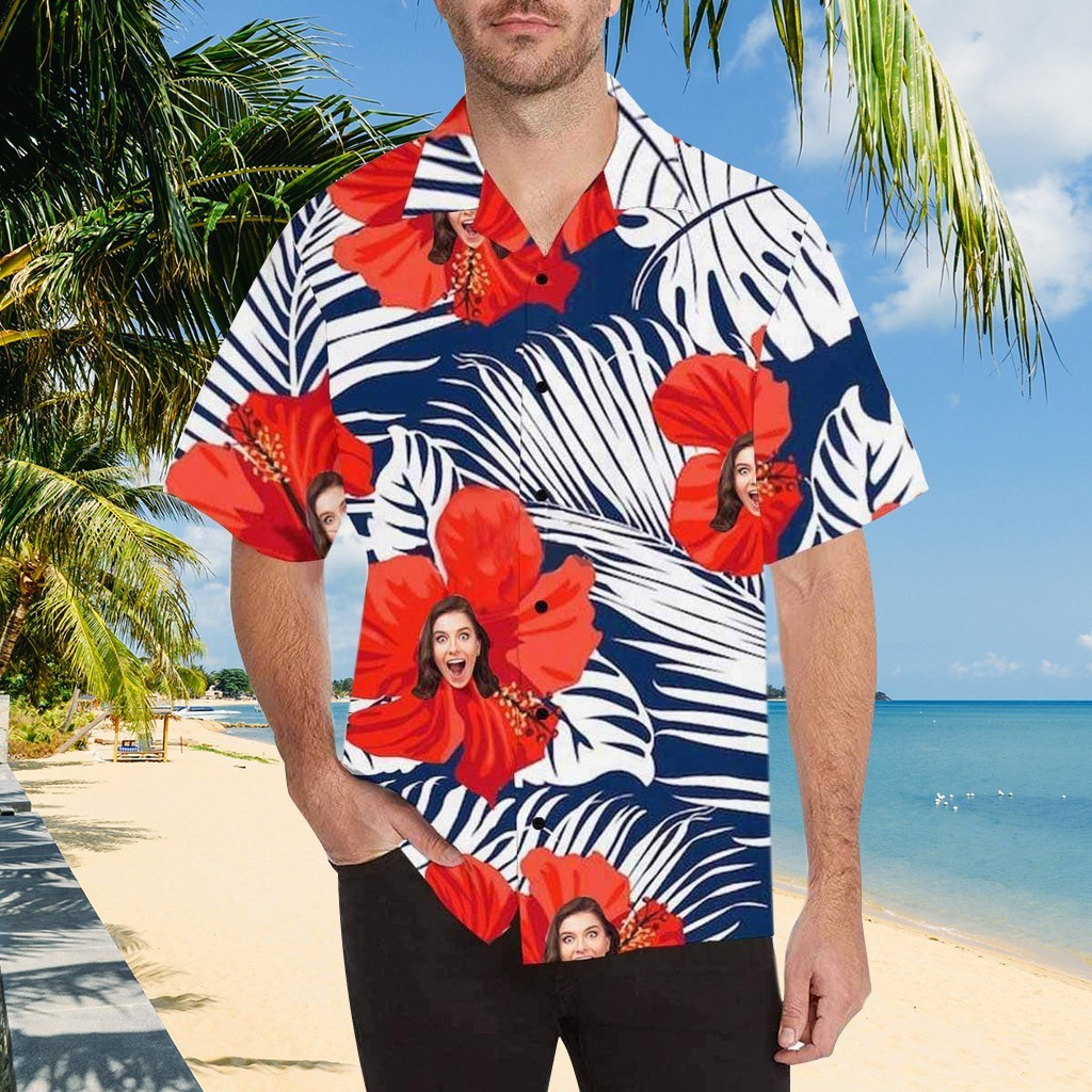 Personalized Face Shirt Hawaiian Shirt With Flower Leaves Pattern Summer Keepsake Gift Ideas For Him