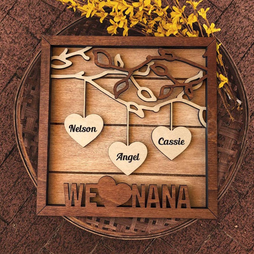 Personalized Family Tree Wooden Hanging Hearts Sign with Kids Names for Mom Grandma Family Christmas Gifts
