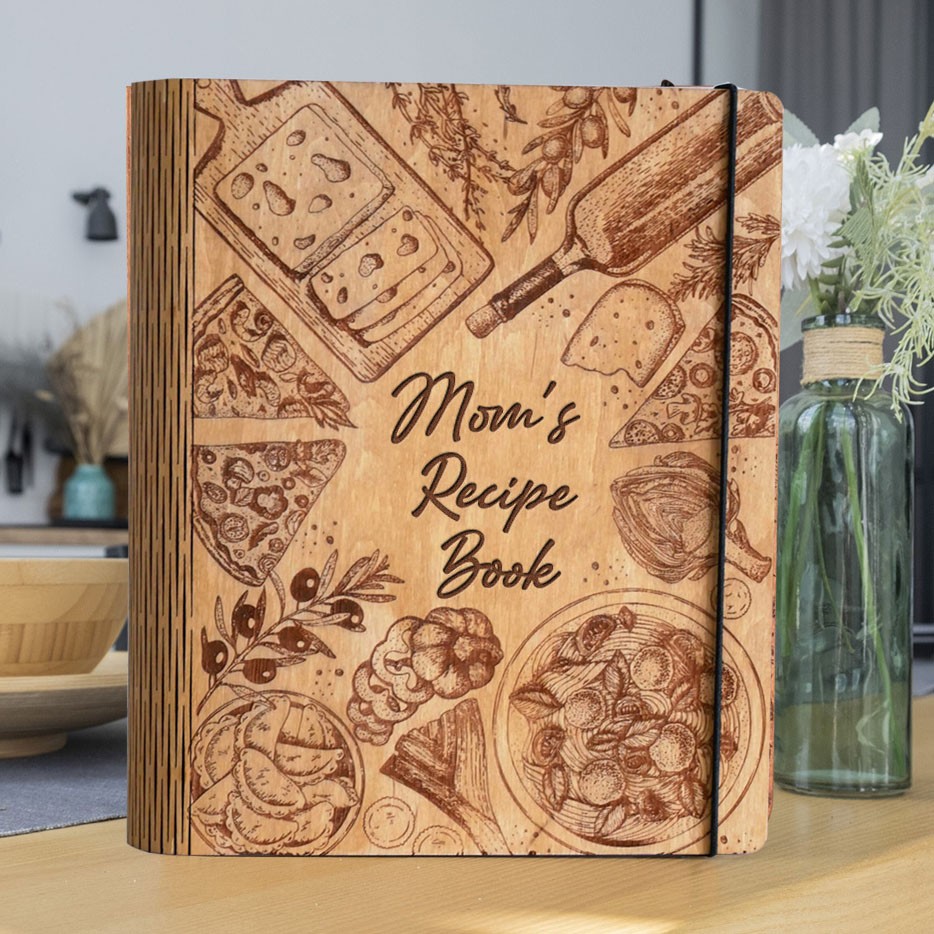 Personalized Family Wooden Recipe Book Blank Binder Family Keepsake Gifts Christmas Gift for Mom
