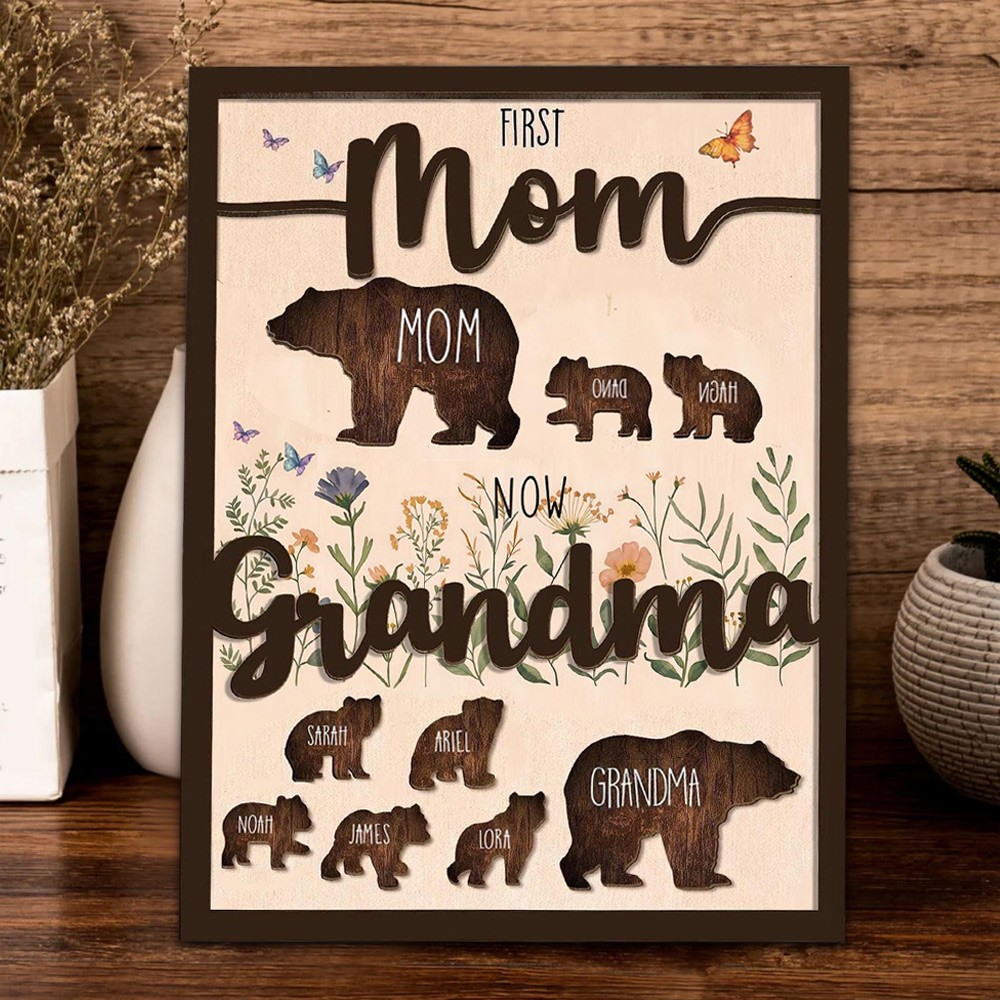 Personalized First Mom Now Grandma Wooden Mama Bear Sign with Kids Names Gifts for Mom Grandma Mother's Day Gift