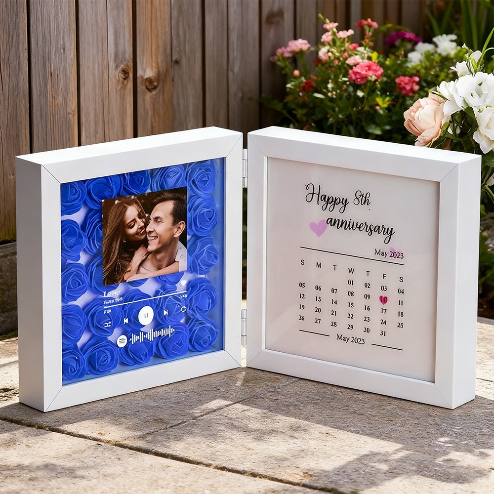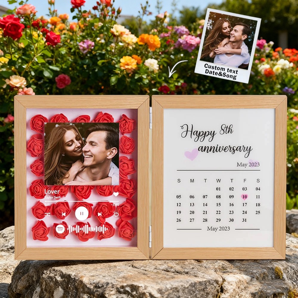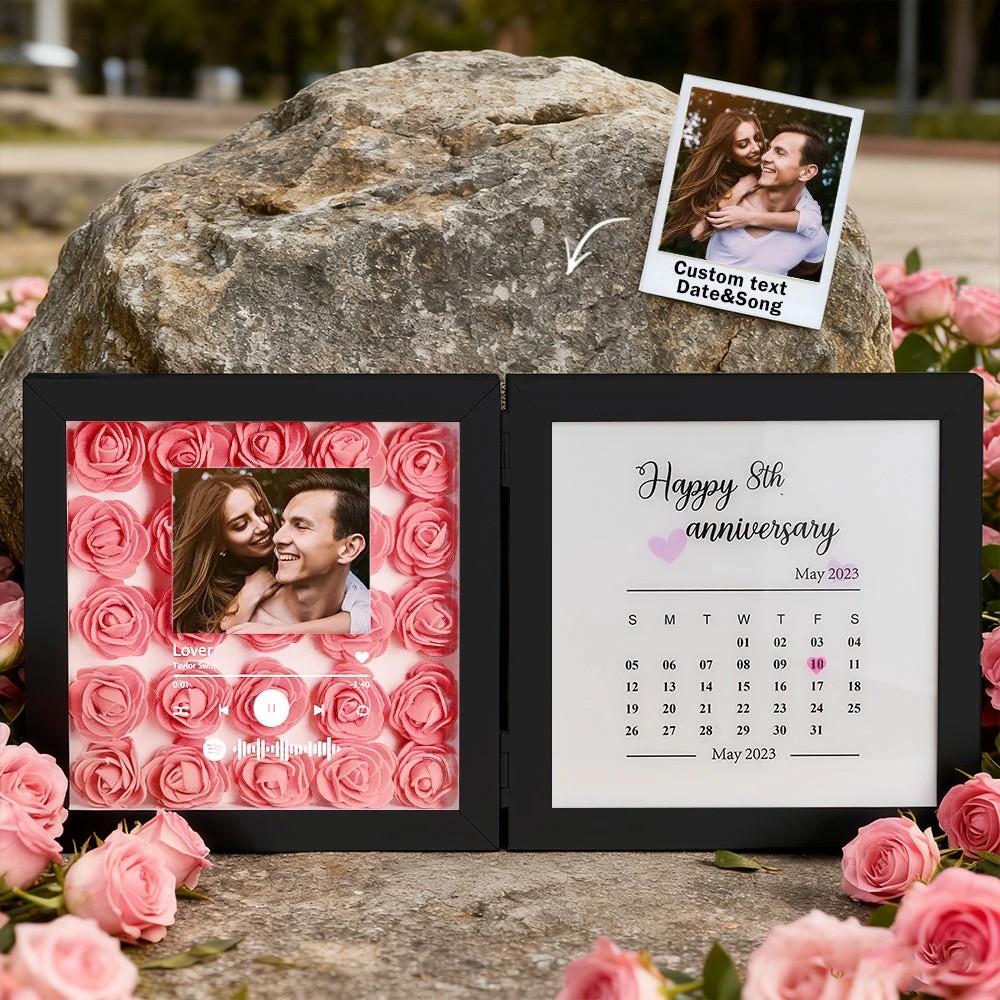 Personalized Flower Shadow Box With Calendar Gifts for Couples Unique Anniversary Gift Christmas Gift